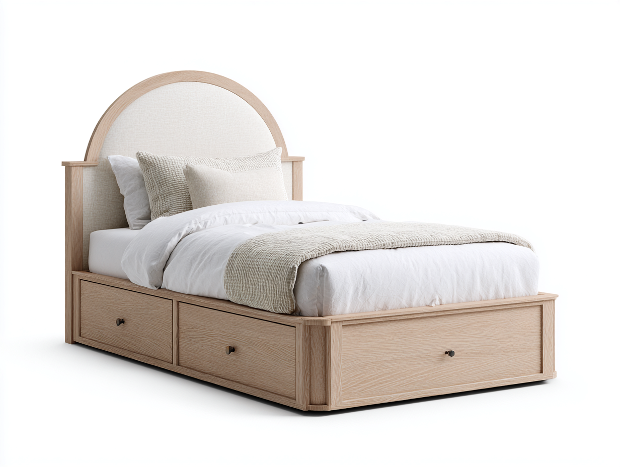 Einzelbett Stoffpolster Holzrahmen mit Schubladen 200x90x120 cm - Beige-Holzfarben - klassisches Design für Schlafzimmer