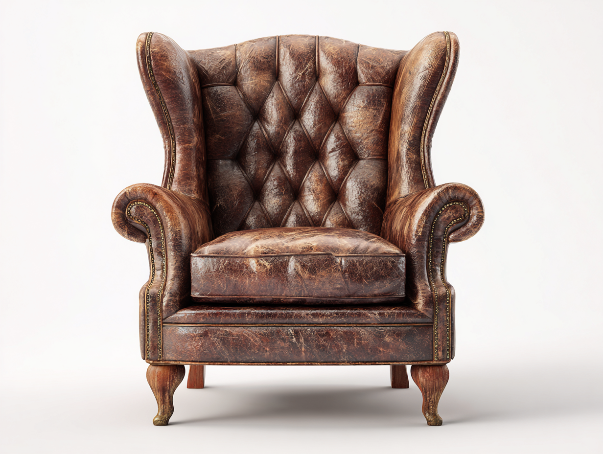 Ohrensessel Lederoptik 85x90x105 cm - Braun - klassisches Design für Wohnbereich