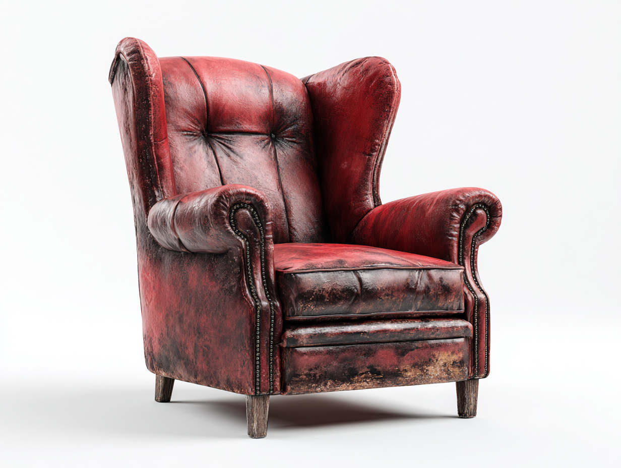 Ohrensessel Lederpolster mit Holzbeinen 90x85x105 cm - rot-braun - fuer Wohnzimmer - klassisches Design