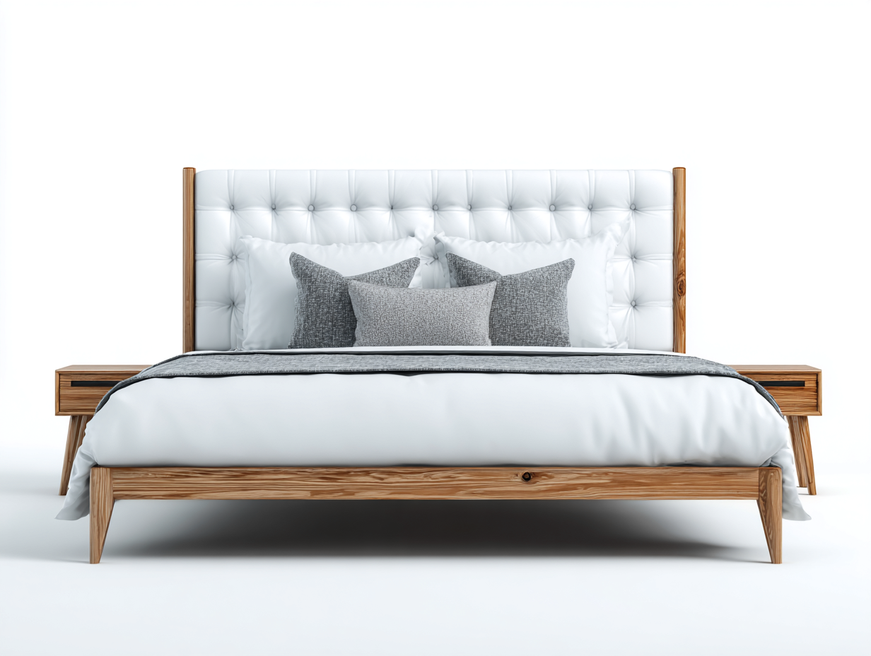 Gefertigt aus massivem Holz in brauner Ausfuehrung mit einem gepolsterten Kopfteil in Weiss. Die Oberflaechen sind sauber verarbeitet und fuer den dauerhaften Einsatz im Wohnbereich konzipiert.