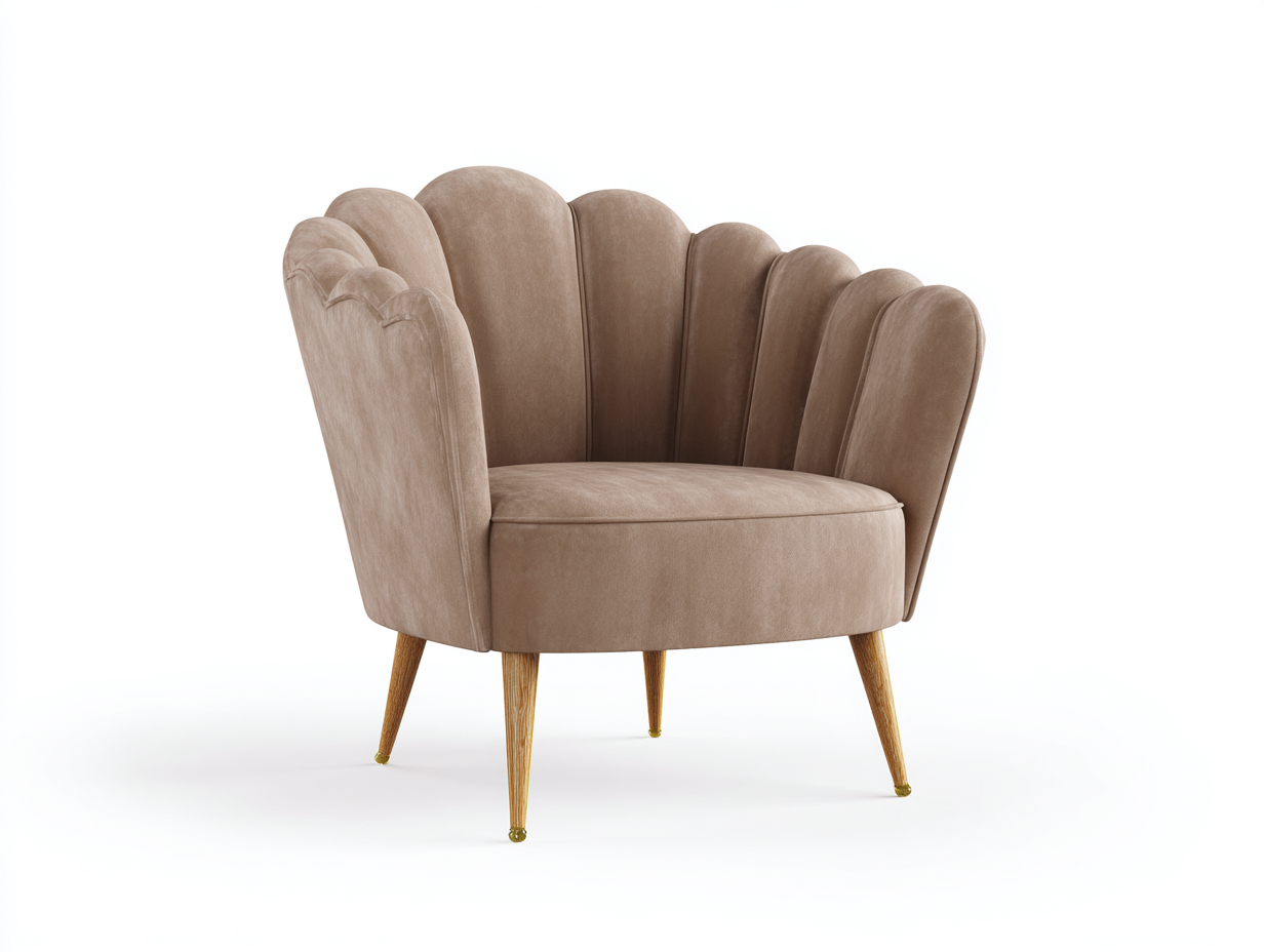 Der Sessel ist vollständig mit hochwertigem Stoff in Braun bezogen. Die schlanken Holzbeine sorgen für einen stabilen Stand und ergänzen die Polsterung harmonisch. Die Verarbeitung ist sauber und auf den täglichen Gebrauch ausgelegt.