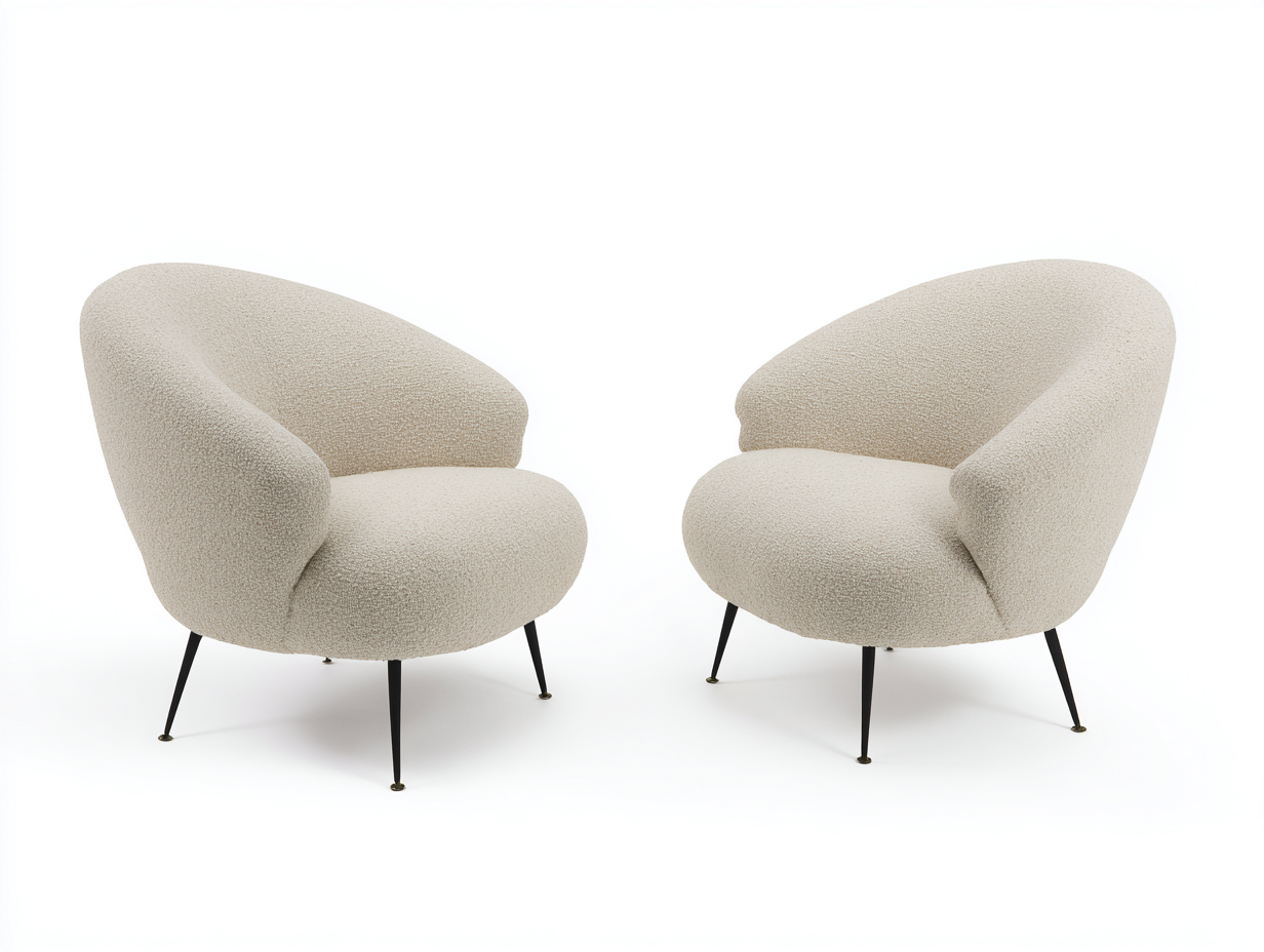Diese Loungesessel zeichnen sich durch eine weiche Polsterung und eine organische Formgebung aus. Das ruhige Design fügt sich harmonisch in moderne Wohnbereiche ein und bietet eine komfortable Sitzgelegenheit für entspannte Momente.